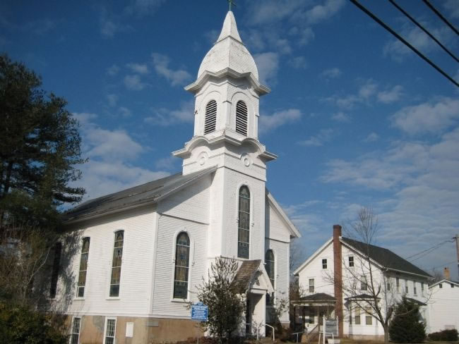 Church to the west in Warren County. Building erected in 1858.